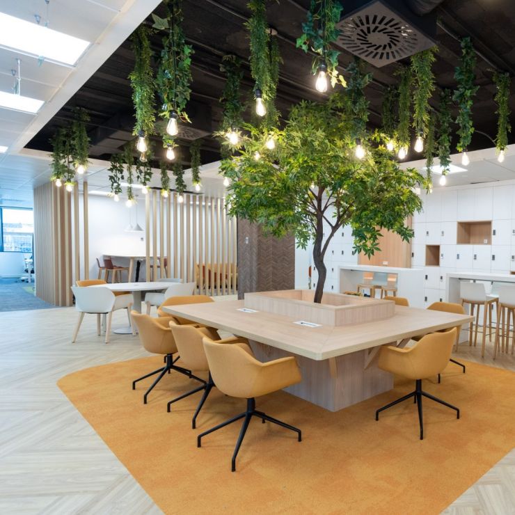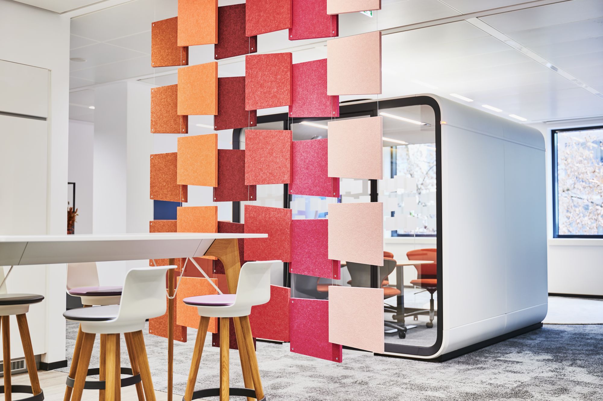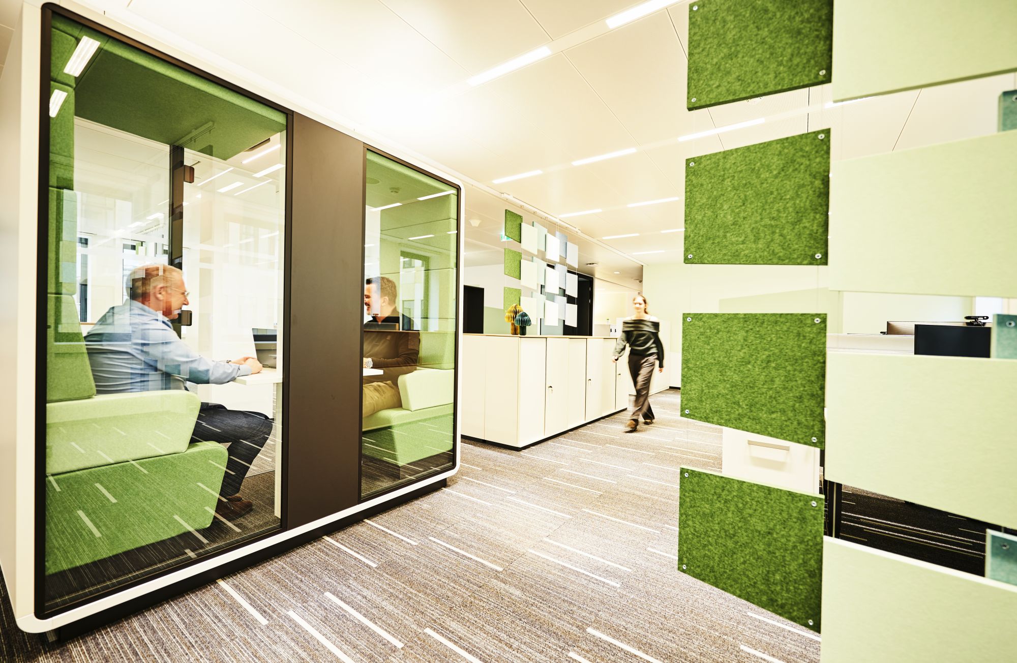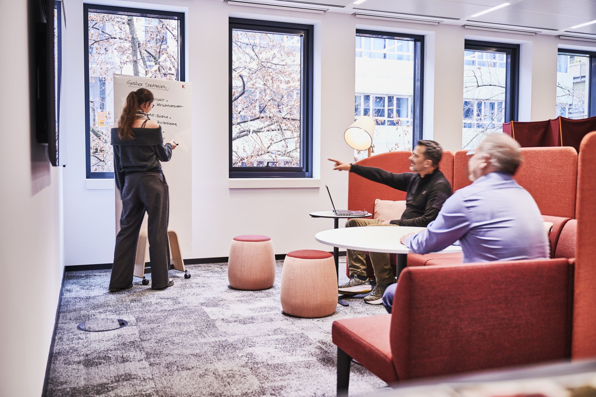 Das Gebäude der Hauptverwaltung ist zum Zeitpunkt der Betrachtung nicht effizient ausgenutzt. Viele Bereiche stehen leer, da ein Großteil der Mitarbeitenden die Möglichkeit von Homeoffice wahrnimmt. Da einzelne Etagen teilweise „verwaist“ sind und andere Bereich „aus allen Nähten“ platzen, wurde es notwendig, ein neues Konzept für die Nutzung der Hauptverwaltung zu entwickeln. Neben Potentialen für ein zukünftiges Wachstum, sollten auch neue Arbeitsweisen wie New Work betrachtet werden. Nach ausgiebiger Nutzerbedarfsanalyse und Konzeptentwicklung traf die Geschäftsleitung die Entscheidung, „New Work“ in einer Pilotfläche (eine Etage) zu testen und die Mitarbeitenden aktiv in den Veränderungsprozess mit einzubinden. Die Mitarbeitenden wurden neben der Vorstellung von neuen Arbeitsmöglichkeiten und Kollaborationsflächen auch im Umgang mit Desksharing und den damit verbundenen Veränderungen der Arbeitsprozesse und -Abläufen geschult. Neben den räumlichen Veränderungen wurde großes Augenmerk auf das Thema Mitarbeiterbeteiligung gelegt. Hier wurden die Mitarbeitenden umfassend mit eingebunden.