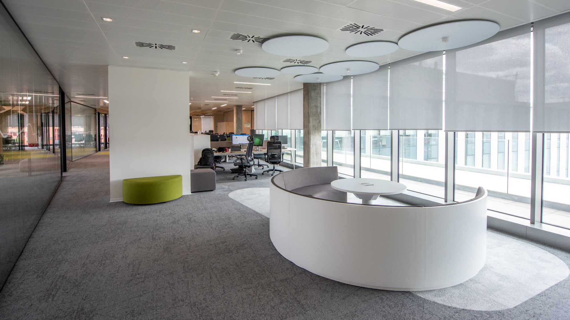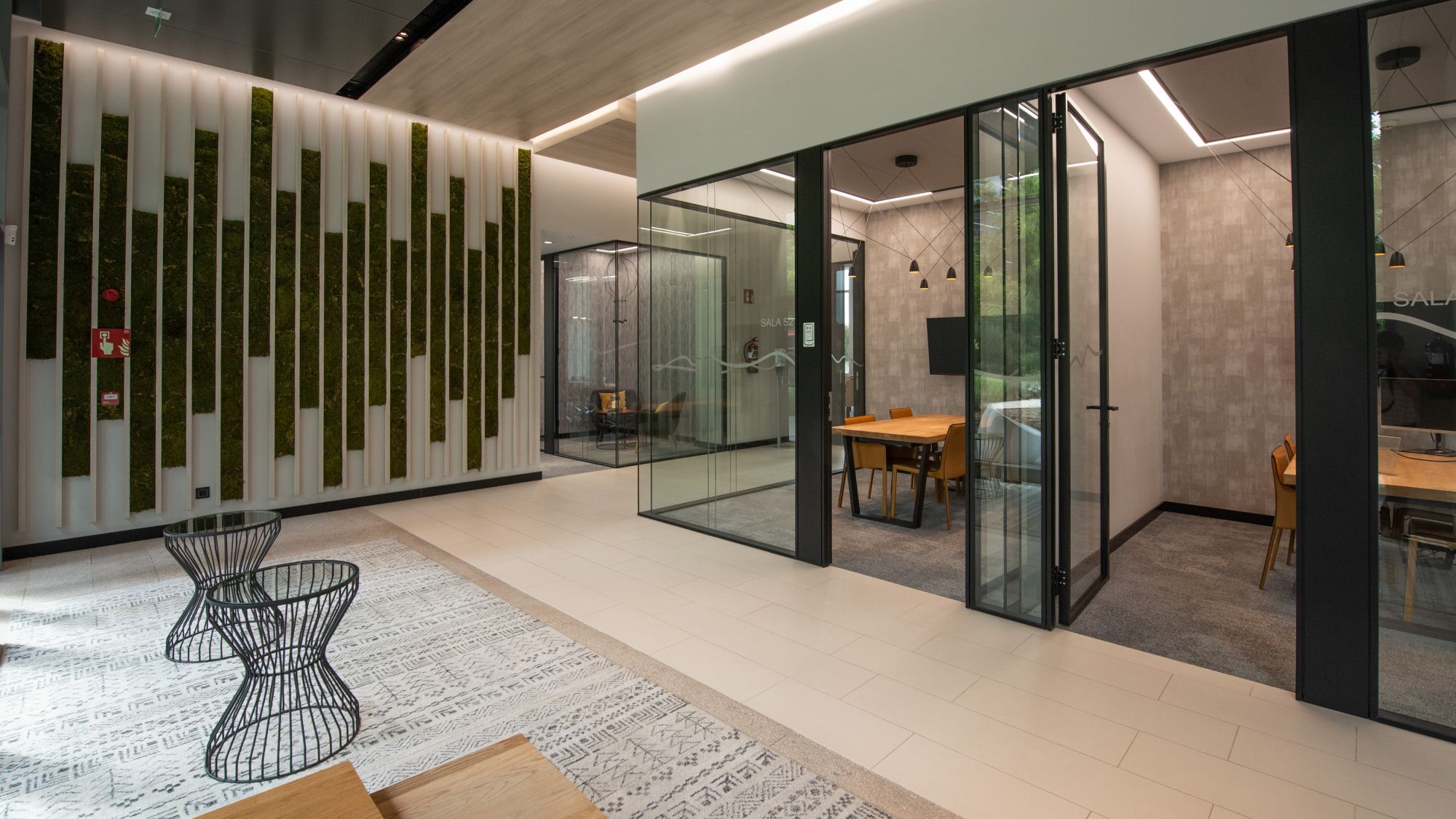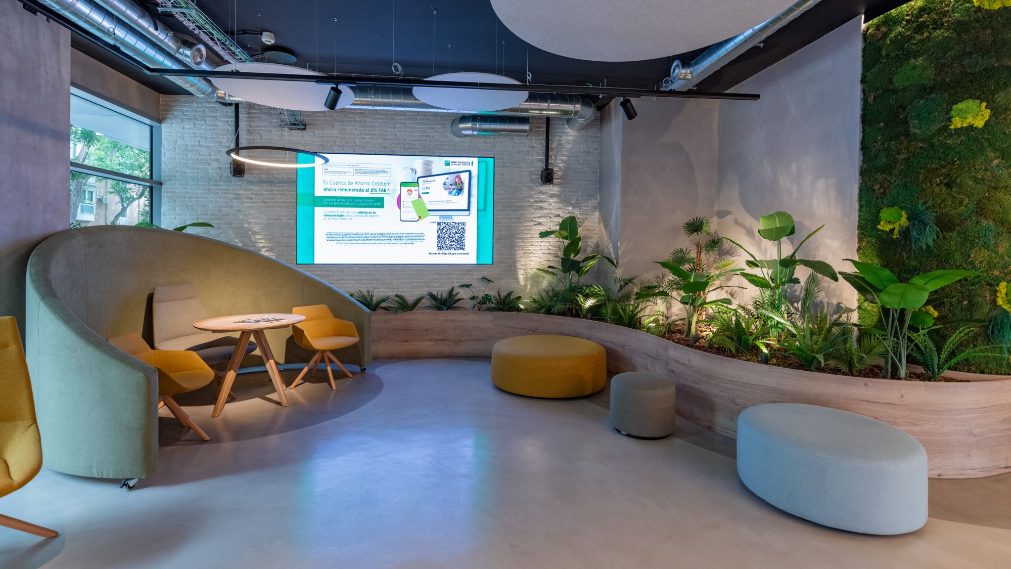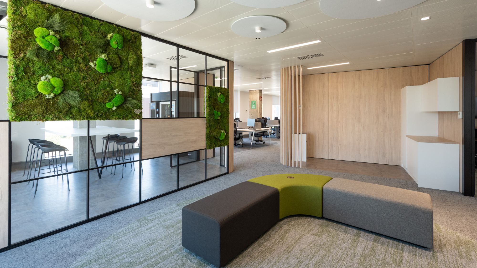 Además de los amplios y luminosos espacios de trabajo, la nueva sede cuenta con salas de colaboración inspiradas en ambientes confortables, naturales y hogareños, transformando la oficina en un entorno tranquilo, inspirador y saludable. A ello contribuyen espacios como “el ágora” con una gran mesa de trabajo bajo un “árbol” en medio de la oficina, plantas liofilizadas, la cafetería de trabajo y el restaurante, abierto también a la comunidad y la zona de bienestar (espacios médicos y de enfermería). Otros entornos dinámicos, como salones, cabinas telefónicas, salas de reuniones, formación y auditorio, también son accesibles a la comunidad. Los materiales, como la madera, los tonos tierra y el verde de la vegetación, han desempeñado un papel esencial en el proyecto, haciendo de la sede un entorno de trabajo único e innovador.