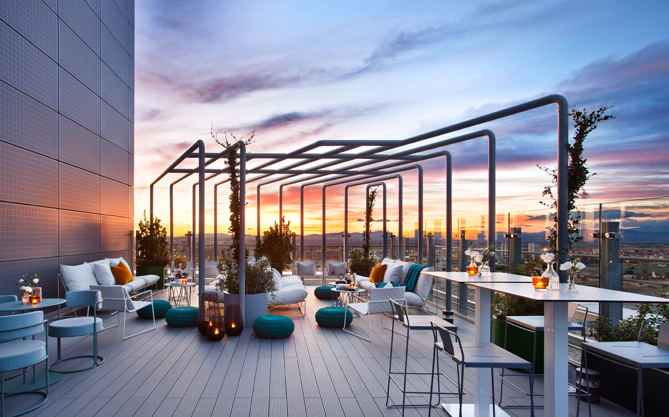 Pero la innovación no se detiene en el interior. En la azotea, un oasis urbano espera ser descubierto. La terraza rooftop y la zona de chill out brindan un escenario idílico para eventos al aire libre, donde los miembros de Loom Chamartín pueden reunirse, celebrar y encontrar inspiración bajo el cielo de Madrid.