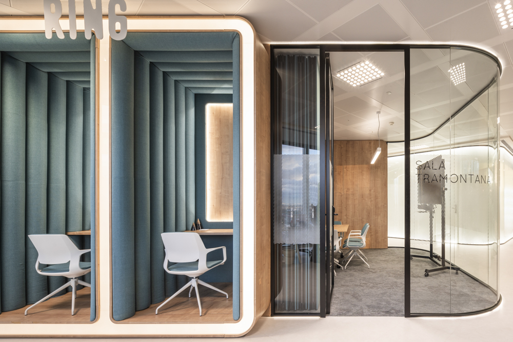 Los materiales seleccionados desempeñan un papel crucial en la configuración de esta atmósfera inspiradora. La abundante entrada de luz natural, filtrada a través de formas orgánicas y espacios abiertos, impulsa la conexión humana. Las salas de reuniones y los pone booths, diseñados con líneas fluidas, no solo ofrecen privacidad cuando se necesita, sino que también fomentan la interacción y el intercambio de ideas.