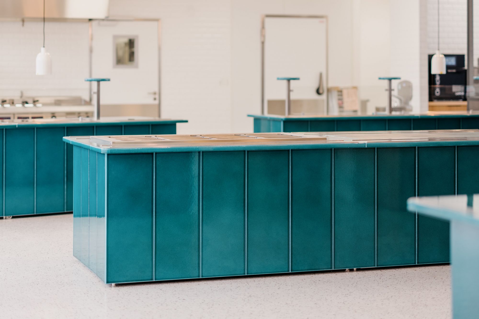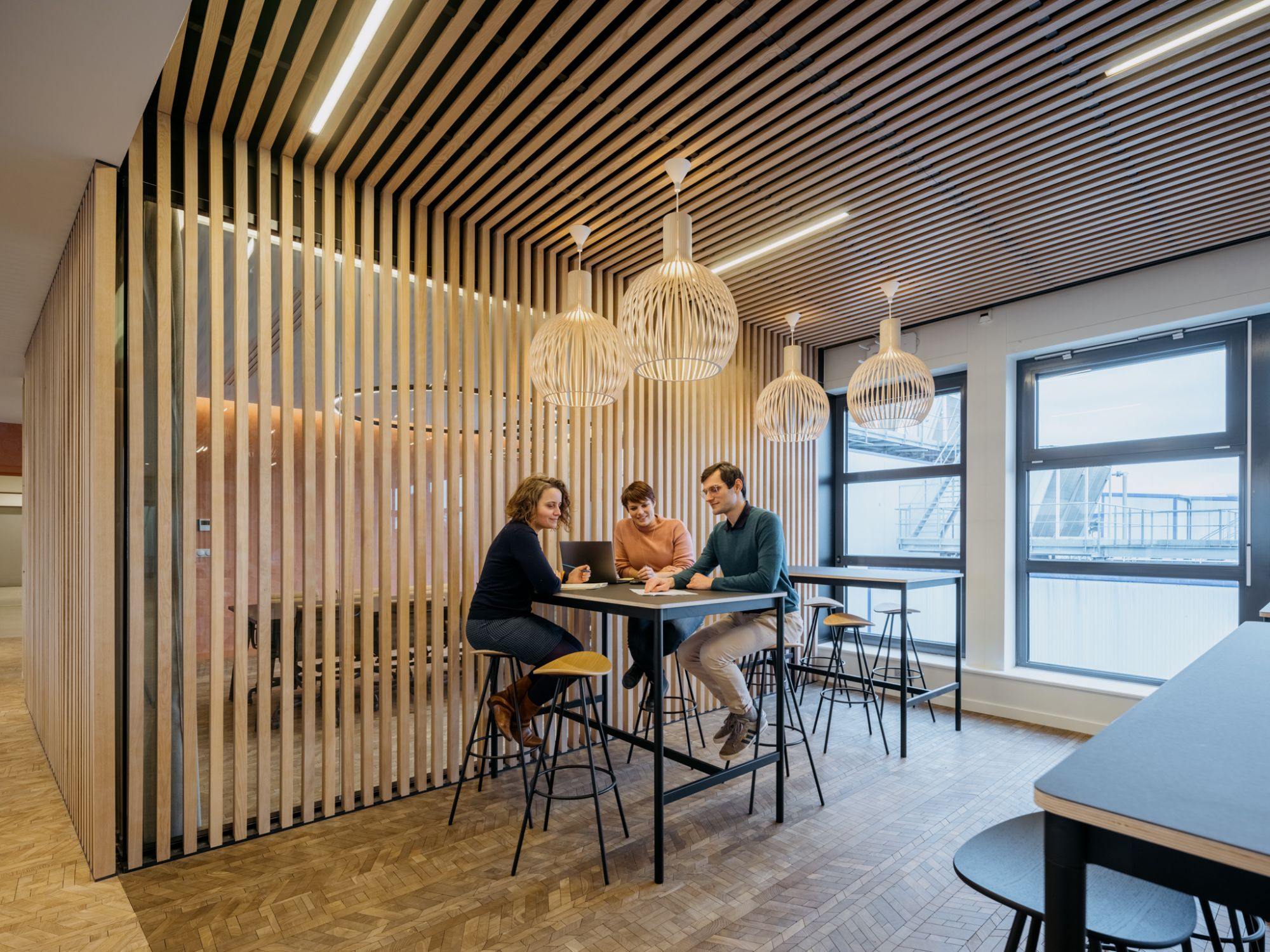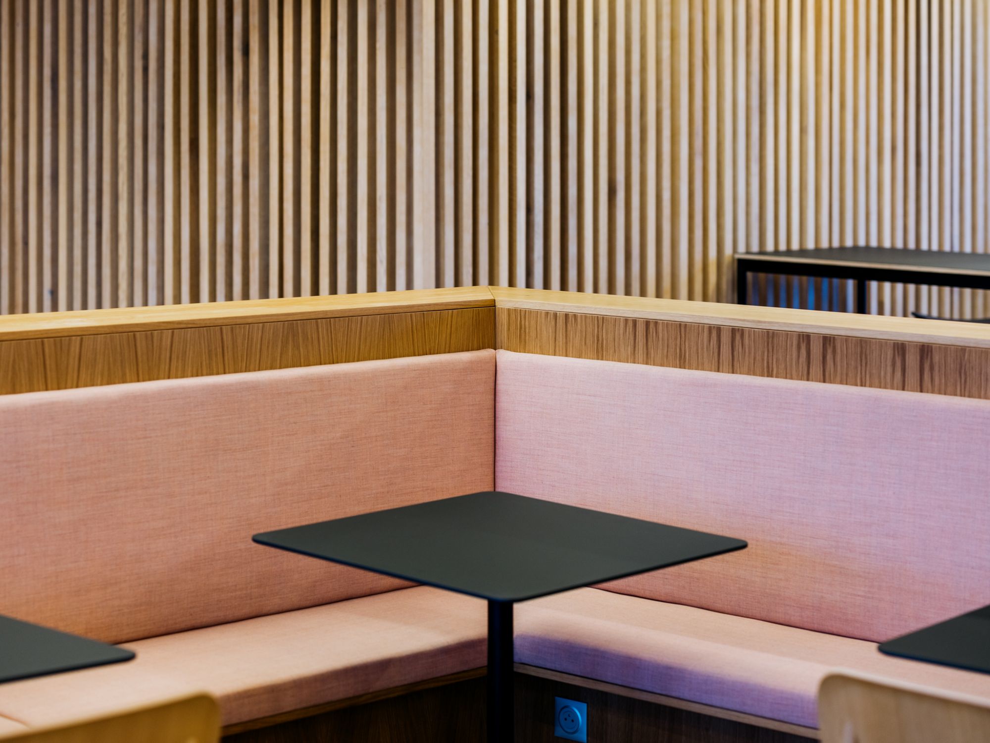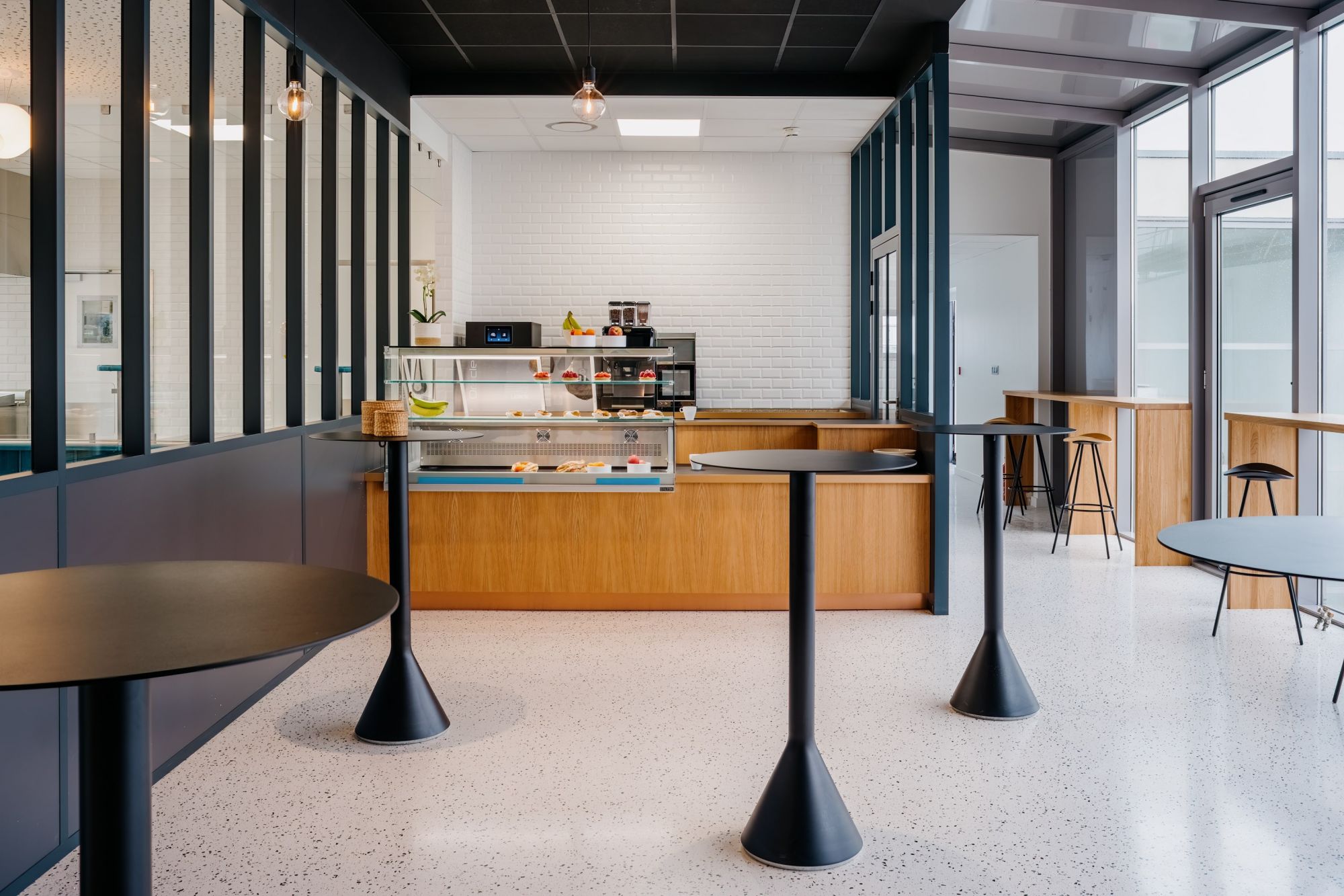 Un travail sur la flexibilité des espaces et la pluralité des usages a été mené par nos équipes, pour assurer une activité de restaurant, de cafétéria et également de co-working.